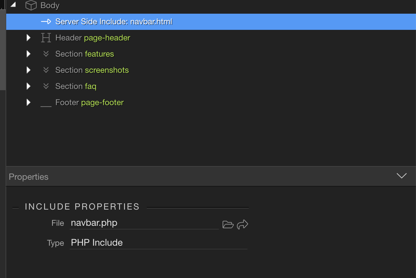 If I include a navbar in an include, then it is not editable using Wappler - I can edit the html directly, but I can’t edit it visually, or add any of the Wappler special sauce.