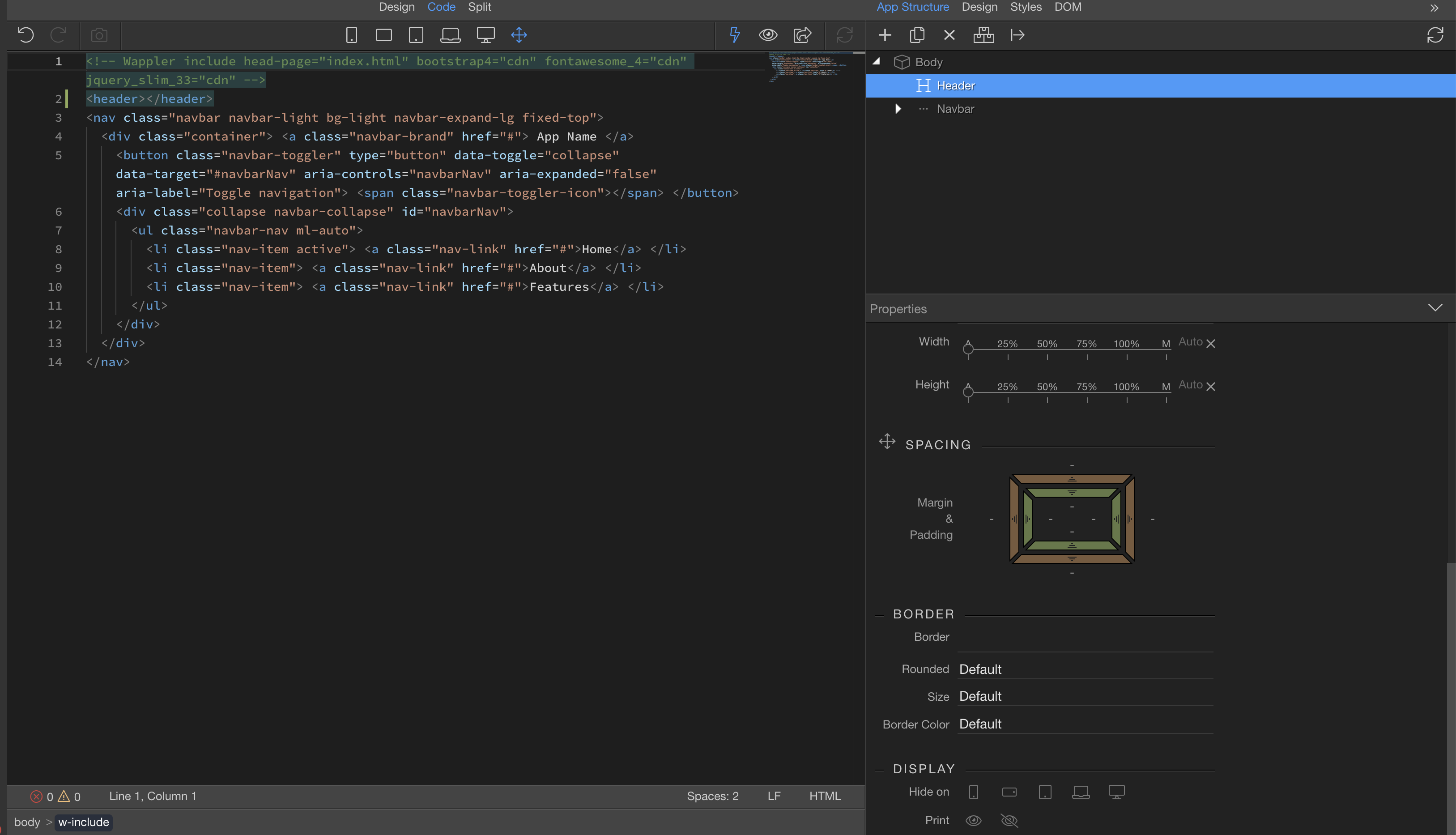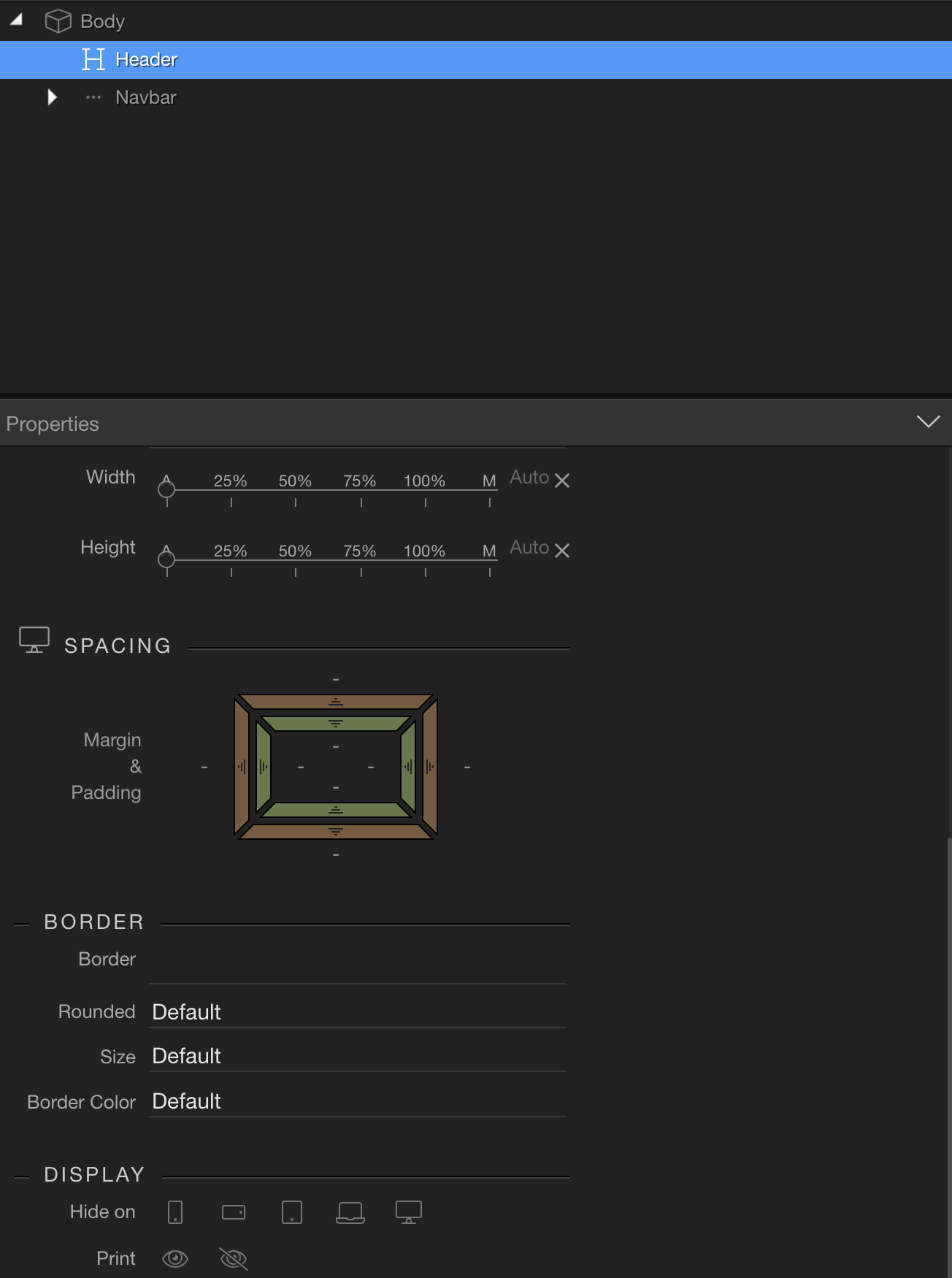 For example, if I add a Header element directly to the main file, then I have a bunch of dynamic features I can set…