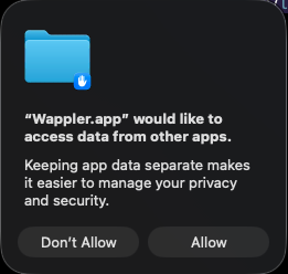 It’s part of Apple’s sandboxing and privacy model. The system is basically saying: “Wappler wants to reach beyond its own sandbox. Do you want to allow that?”