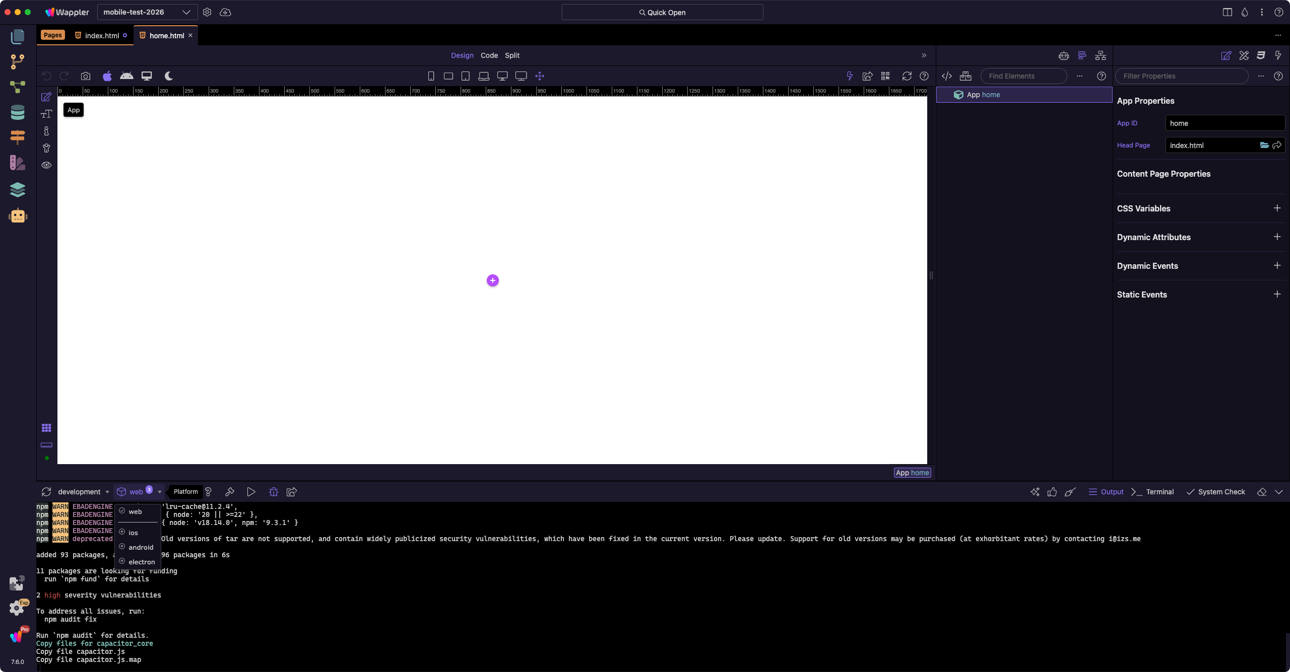 What’s interesting as well is I opened up another mobile project which was created in a previous version of Wappler that worked well, and those options are not their either. Seems to be an issue with this version of Wappler.
