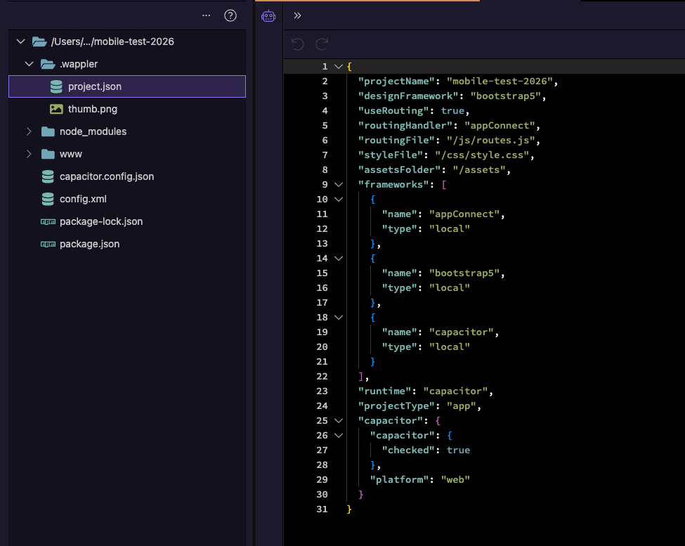 So what's inside the project.json file after you create a mobile project the way shown in my screenshot? Enable hidden files in file manager and you can find the file in the .wappler folder: