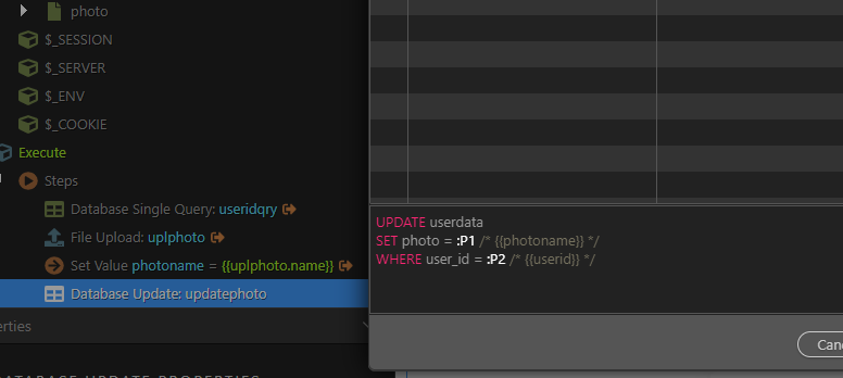 @Sorry_Duh This is where something is wrong, the DB update does not return the photo name after the upload (I did pick the sub var ‘name’ for my global fields).
