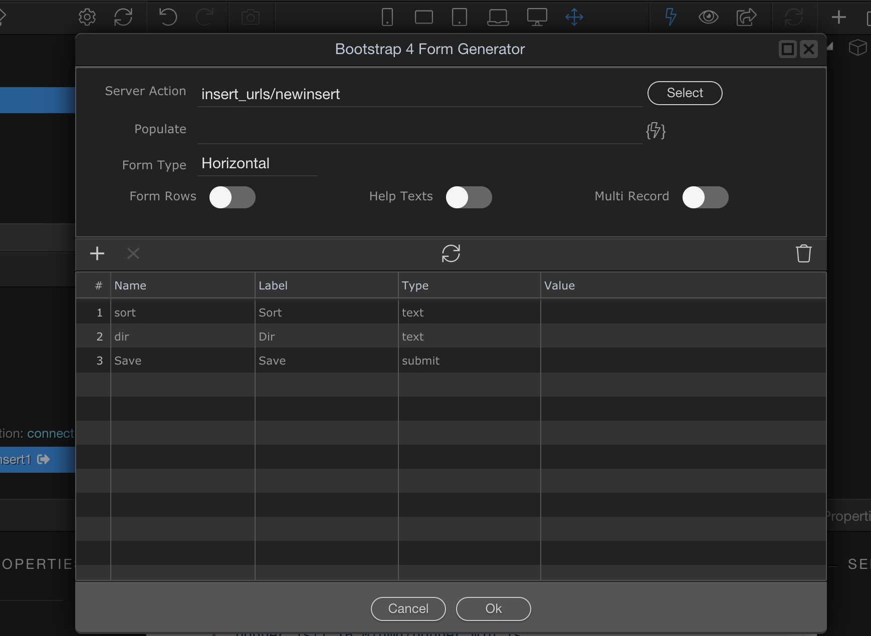 I have failed now for a solid week since updating to 2.7.1 & 2.7.2 to create a simple Insert form to a localhost database table.