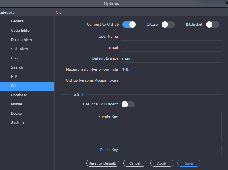 With Wappler you can connect seamlessly your Wappler project to Github, Gitlab or BitBucket repositories. You can push and pull your local project to the selected remote repository.