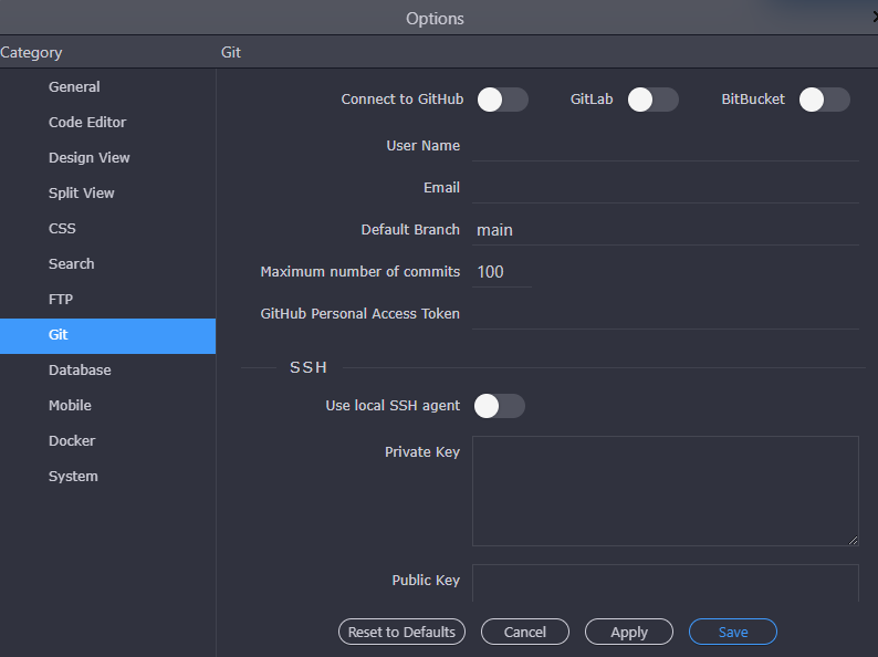 I reset the Git settings: