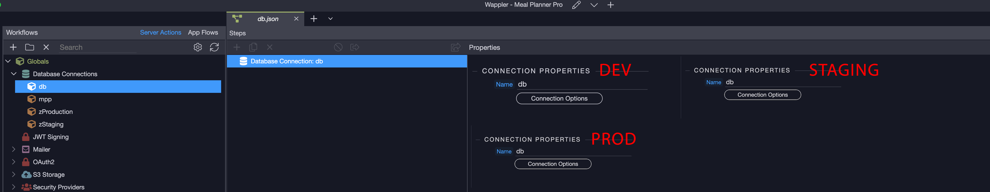 I have a managed production database on Digital Ocean which was created with the Wappler resource manager. The database is defined in the production target as well. But whenever I try to perform a database action on the production server then it tries to connect to my local development database from my development target. So I’m getting a connection error: