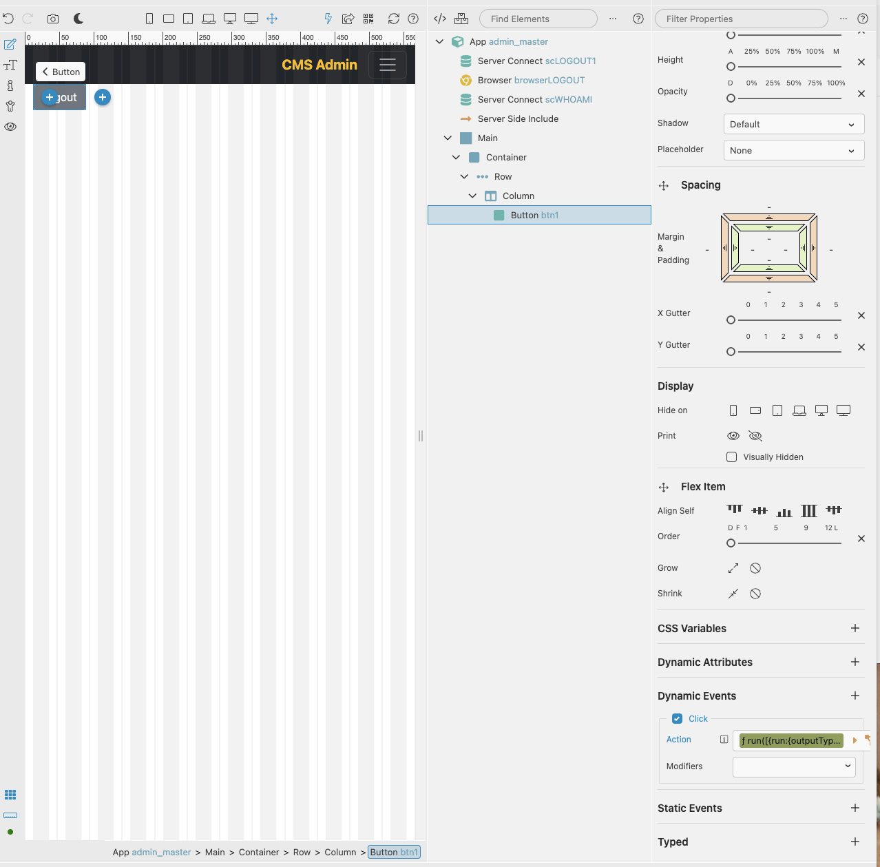 Which means - remove the flow from the button. Add a click dynamic event and call the server action directly on click (without a flow).