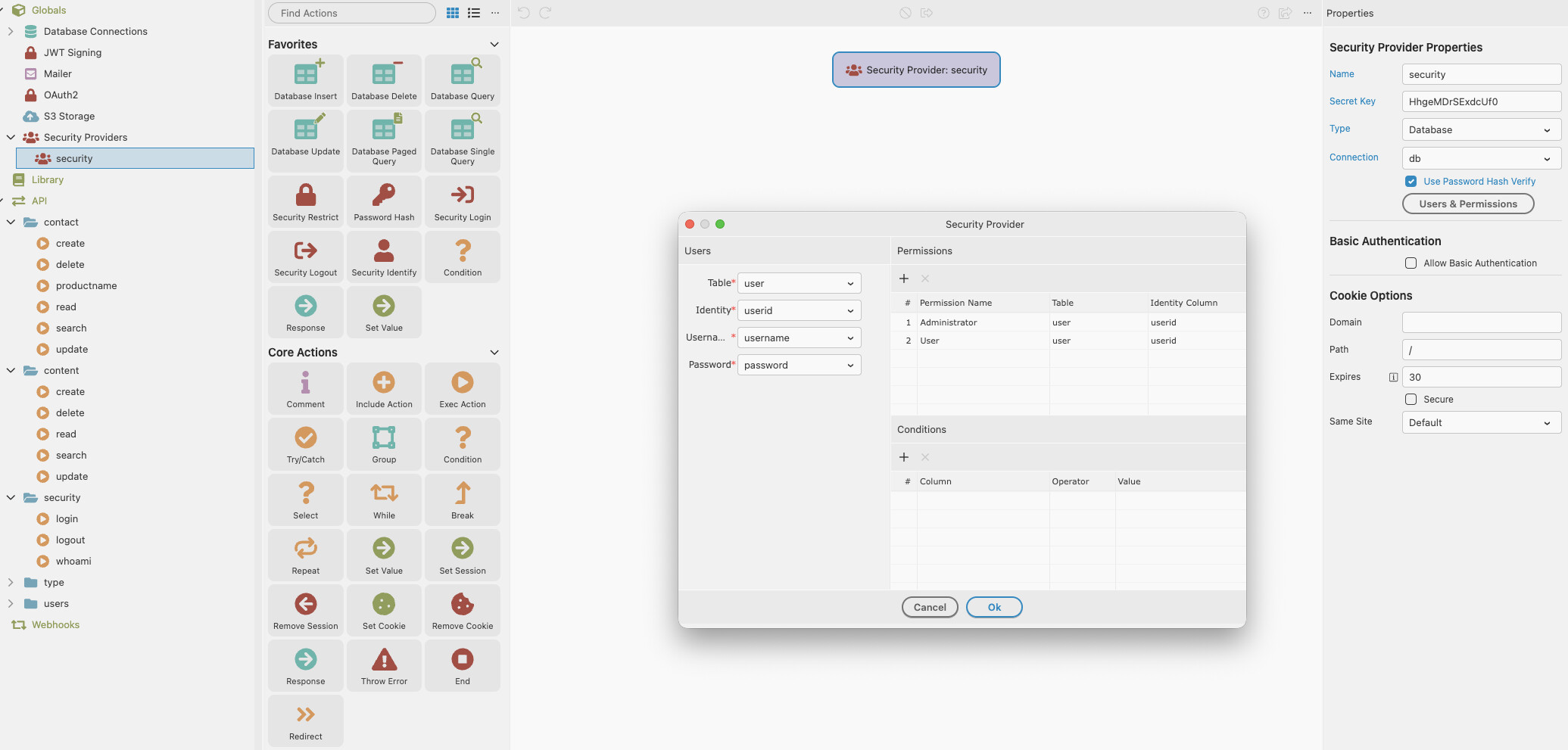 I am sure that I am doing something wrong. So I am starting again and no matter how many times I delete the Security Provider it keeps coming back when I restart Wappler and I have checked that the file doesn’t exist on the server or locally.