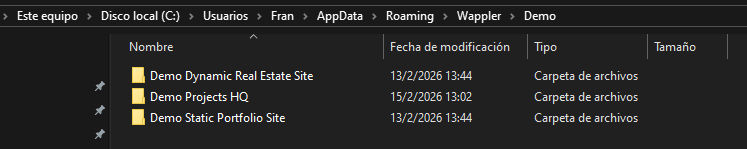 Now, a project folder name must not contain spaces, but they're included on the demo folder: