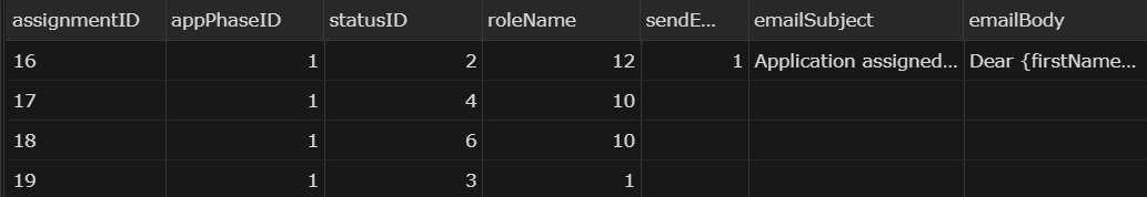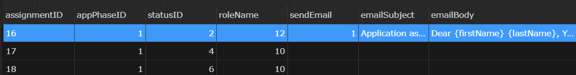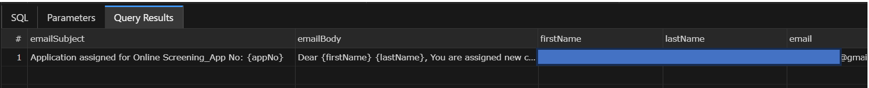 I query the phaseID, statusID, fName & email of the user to whom the application is assigned & mail needs to be sent.