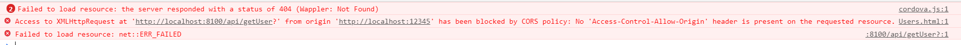 Failed to load resource. Server Connect in Desktop app that's connecting to Data API (Server project) is not returning data. If I go directly to the URL for the API in the browser (e.g. http://localhost:8100/api/getUser) I can see the data.