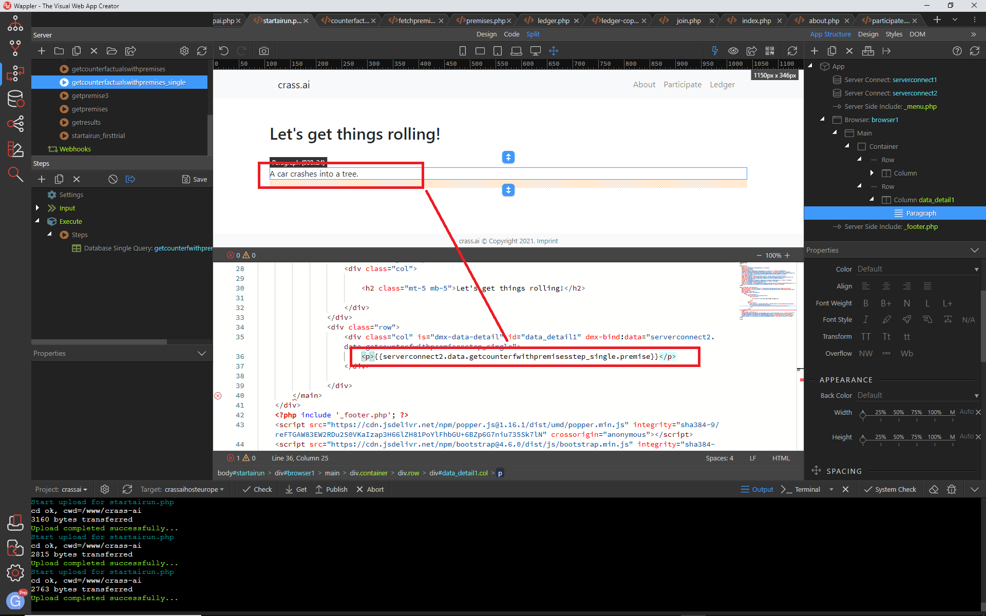 It seems I’m missing something. I want to show data from a simple single data query. I got the data query and serverconnect set up. I call the serverconnect inside data detail and in the Wappler editor everything is fine: