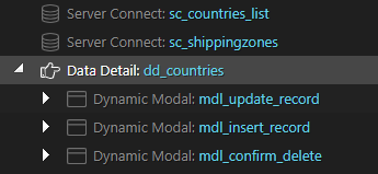 The Data Detail component is very useful for example if you have a table of results and you want to edit those records using modals, without having to run any extra queries. Eg here I would have buttons which open the modals by passing the id to the Data Detail component. The required data was included in the initial query (sc_countries_list). Obviously this approach won't be appropriate in all cases.