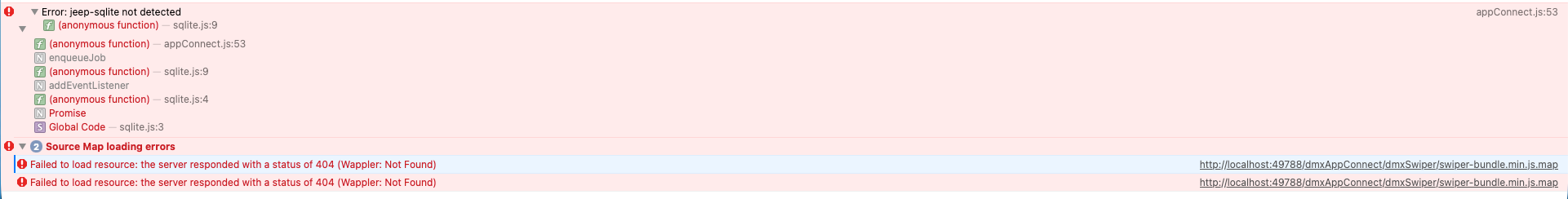 jeep-sqliteis not detected. - swiper-bundle.min.js.map was missing. So I added that from this link