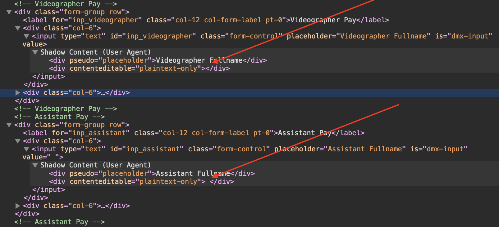 I have a modal that I use as an update form. There’s space that keeps popping inside a dmx-bind:value. The preceding inputs have identical structure, however, the last input, if blank should show only the placeholder info. In this case, the input displays a blank input and not the placeholder’s data. All this is caused by a space that is mysteriously placed in the input.