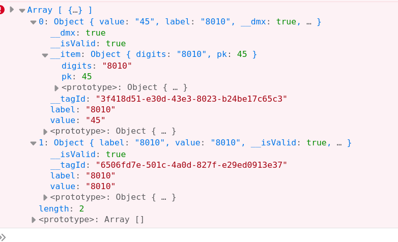 8010 can be added 2 times to the list (but not 3 times). the value of the first item is “8010;AUT”. the value of the second item is “8010”. i guess because tagify already removed the value of the second item of the list, because of duplicate. but somehow two problems 1) not removed from display and 2) the text field is transferred to backend.